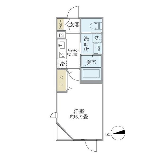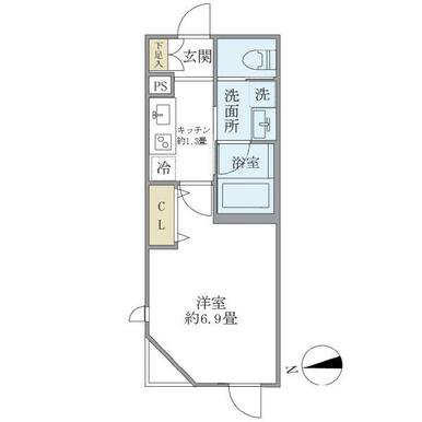 | 間取り | 1K(K1.3・洋室6.9) | 主要採光面 | 西 |