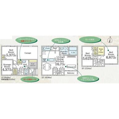 | 設備 | システムキッチン 床下収納 モニタ付インターホン ディンプルキー 浄水器 浴室乾燥機 追焚機能 シャワー付洗面化粧台 人感センサー付照明 ダウンライト 照明器具 | ||